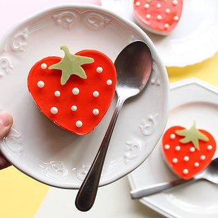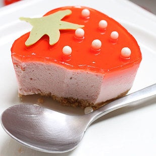 20. Save yourself the trouble of actually baking and make these mini heart-shaped strawberry cheesecakes topped with a layer of jelly, white pearls, and green chocolate melts shaped to look like leaves.