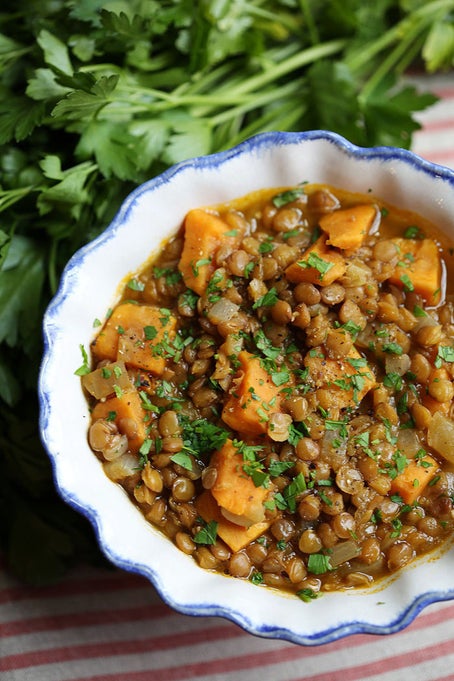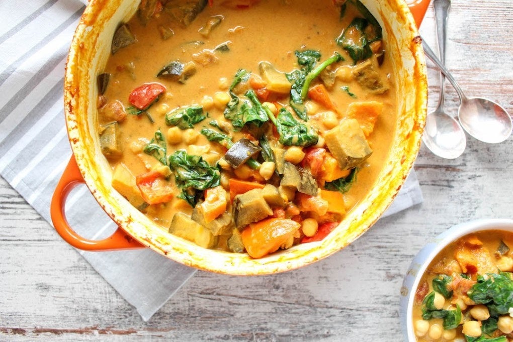 Recipes (from left): Lentil and Sweet Potato Stew, One-Pot Eggplant, Pumpkin, and Chickpea Curry